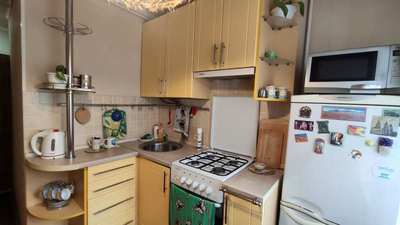 Кухня вбудована, нова газова плита і сучасна газ. колонка-автомат — гаряча вода є завжди. Сумісний санвузол.